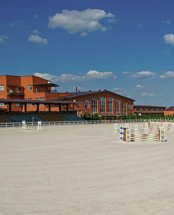 Для проживання спортсменів та гостей на території побудовано два готелі, загальною кількістю 66 номерів на 134 особи, автостоянка з електропідключенням, допоміжні приміщення, роздягальні, душеві , двоповерхове адміністративне приміщення, пункти харчування, розважальні заклади. Об’єкт знаходиться під охороною з відео наглядом.